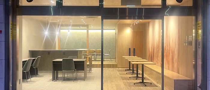 駅の直近で打ち合わせができる利便性をもち、かつ執務空間としてもイベントスペースとしても利用できる自由度の高いハブスペース的な場を持ちたいとの要望でした。